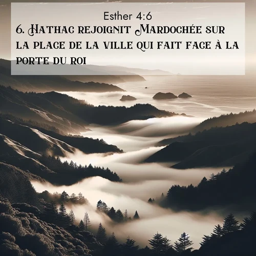Esther 4:6 . Hathac rejoignit Mardochée sur la place de la ville qui fait face à la porte du roi,