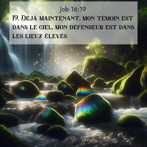 Découvrez des versets bibliques magnifiquement intégrés à des scènes naturelles de saisons variées, avec des ciels clairs d'été, des neiges d'hiver, des feuilles d'automne et des fleurs de printemps. Chaque image capture la splendeur et la paix de la création divine. Partagez des versets comme Segond Job 16:19 .Les images de versets bibliques sont créées à partir des versets de la Bible Louis Segond 21. Cette traduction française est fournie par la Maison de la Bible. Vous pouvez consulter Bible Segond 21 (S21) gratuitement online sur notre site. Nous vous encourageons à inclure un lien vers ces pages pour faire connaître cette ressource gratuite à d'autres. L'église Renens AB est content de mettre les images à disposition gratuitement. voir Bible Louis Segond 1912