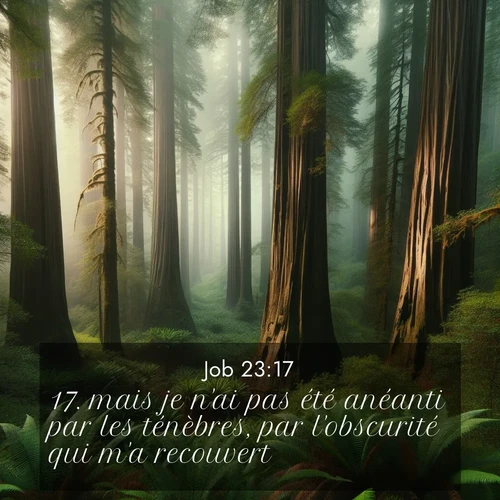 Accédez à une vaste collection d'images de versets bibliques illustrées par des paysages naturels tels que des rivières calmes, des champs en fleurs et des horizons lumineux. Ces images mettent en avant la sérénité et la splendeur de la création de Dieu, accompagnées de polices esthétiques et de couleurs joyeuses. Téléchargez des versets tels que Segond Job 23:17 et partagez-les.Les images de versets bibliques sont créées à partir des versets de la Bible Louis Segond 21. div>