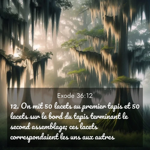 Plongez dans notre collection de versets bibliques inspirants associés à des paysages de dunes infinies, des oasis ombragées et des couchers de soleil sur le désert. Ces images évoquent la grandeur majestueuse de la création divine. Téléchargez et partagez des versets tels que Segond Exode 36:12 .Les images de versets bibliques sont créées à partir des versets de la Bible Louis Segond 21. Cette traduction française est fournie par la Maison de la Bible. Vous pouvez consulter Bible Segond 21 (S21) gratuitement online sur notre site. Nous vous encourageons à inclure un lien vers ces pages pour faire connaître cette ressource gratuite à d'autres. L'église Renens AB est content de mettre les images à disposition gratuitement. voir Bible Louis Segond 1912