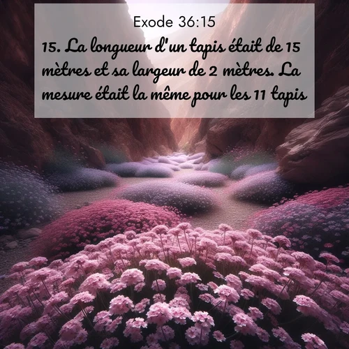 Explorez des images de versets bibliques accompagnées de photos de plages, où les vagues s'écrasent doucement sur le sable et où le ciel se teinte de couleurs pastel au coucher du soleil. Ces scènes transmettent une profonde sérénité. Téléchargez des versets tels que Segond Exode 36:15.Les images de versets bibliques sont créées à partir des versets de la Bible Louis Segond 21. div>