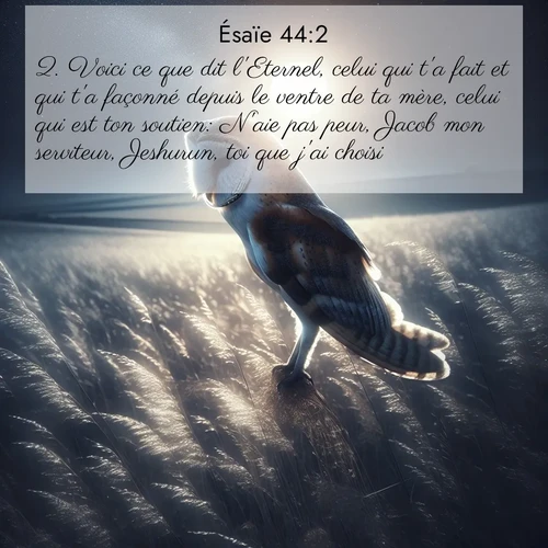 Ésaïe 44:2 . Voici ce que dit l'Eternel, celui qui t'a fait et qui t'a façonné depuis le ventre de ta mère, celui qui est ton soutien: N'aie pas peur, Jacob mon serviteur, Jeshurun, toi que j'ai choisi.