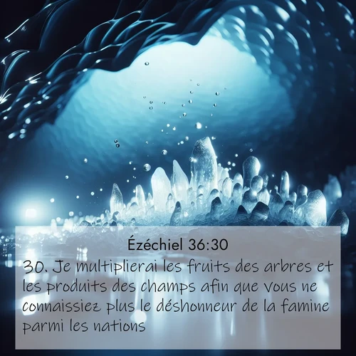 Ézéchiel 36:30 . Je multiplierai les fruits des arbres et les produits des champs afin que vous ne connaissiez plus le déshonneur de la famine parmi les nations.