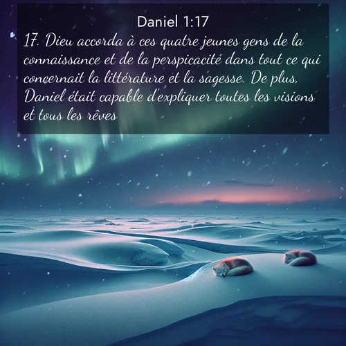 17. Dieu accorda à ces quatre jeunes gens de la connaissance et de la perspicacité dans tout ce qui concernait la littérature et la sagesse. De plus, Daniel était capable d'expliquer toutes les visions et tous les rêves.