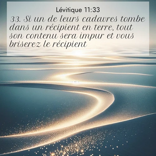 Lévitique 11:33 . Si un de leurs cadavres tombe dans un récipient en terre, tout son contenu sera impur et vous briserez le récipient.