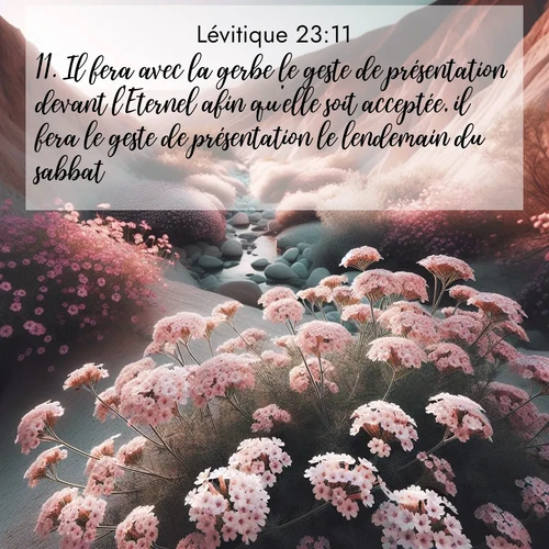 Lévitique 23:11 . Il fera avec la gerbe le geste de présentation devant l'Eternel afin qu'elle soit acceptée, il fera le geste de présentation le lendemain du sabbat.
