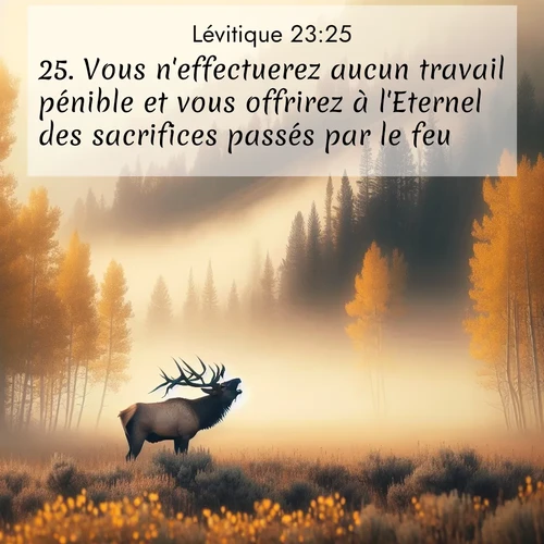 Lévitique 23:25 . Vous n'effectuerez aucun travail pénible et vous offrirez à l'Eternel des sacrifices passés par le feu.»