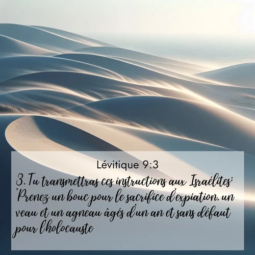 Lévitique 9:3 . Tu transmettras ces instructions aux Israélites: 'Prenez un bouc pour le sacrifice d'expiation, un veau et un agneau âgés d'un an et sans défaut pour l'holocauste,
