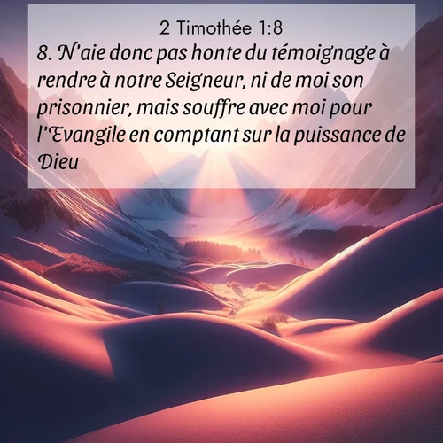 8. N'aie donc pas honte du témoignage à rendre à notre Seigneur, ni de moi son prisonnier, mais souffre avec moi pour l'Evangile en comptant sur la puissance de Dieu.