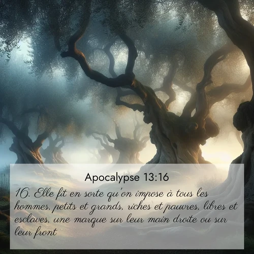 Découvrez une riche sélection d'images de versets bibliques illustrées par des paysages naturels tels que des plages tranquilles, des champs dorés et des arbres majestueux. Ces images visent à capturer la paix et la beauté de la création de Dieu, avec des couleurs vibrantes et des typographies variées. Téléchargez et partagez des versets inspirants comme Segond Apocalypse 13:16 .Les images de versets bibliques sont créées à partir des versets de la Bible Louis Segond 21.